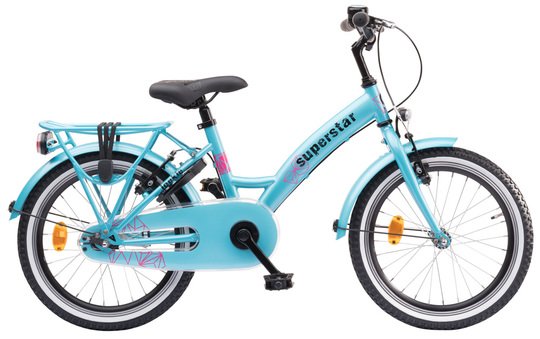 De naam zegt het al; een fiets voor echte superstars! In de kleinste maten uitgevoerd in een hemelsblauwe kleuren. Vanaf 18 inch met slot, batterijverlichting en frisse zeegroene kleuren. Alle modellen zijn voorzien van een praktische drager en stoere profielbanden.