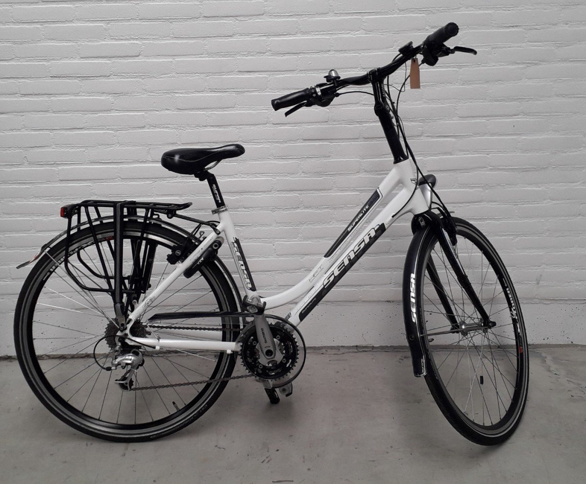 Gebruikte Sensa Superlite damesfiets met 3×9 Shimano LX versnellingen, Hydraulische Magura HS 11 remmen en batterijverlichting.