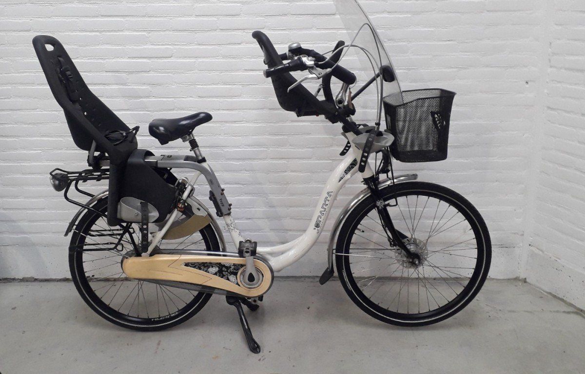 Gebruikte Sparta Amazone moederfiets met 7 versnellingen. Inclusief GMG voor- en achterzitje + windscherm.