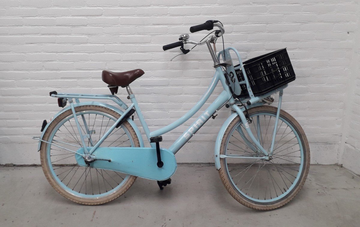 Gebruikte 26” Spirit Cargo meisjesfiets/ transportfiets met 3 versnellingen. Inclusief Basil mandje op de voordrager.